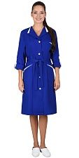• эстетичность. В дизайне используются приемы контраста, комбинирования. Ассортимент составляют модели с длинным и коротким рукавом, на поясе, со шлицей и отрезной кокеткой. Цветовая гамма — выдержанная, преобладают оттенки синего, василькового, черного;